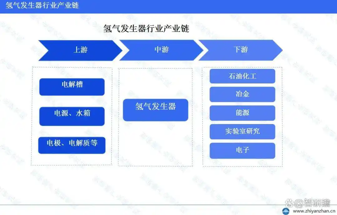 氫氣發(fā)生器上游主要包括電解槽、電源、水箱、電極、電解質等。其中,電解槽是氫氣發(fā)生器的核心部件,用于電解水產生氫氣和氧氣。電源提供電解所需的電能,水箱則用于儲存水源。電極和電解質則是電解過程中的關鍵材料,直接影響電解效率和產氫純度。氫氣發(fā)生器廣泛應用于各個行業(yè),主要包括石油化工、冶金、能源、電子和實驗室研究等。