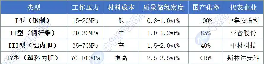 圖表:高壓儲氫瓶技術參數對比矩陣