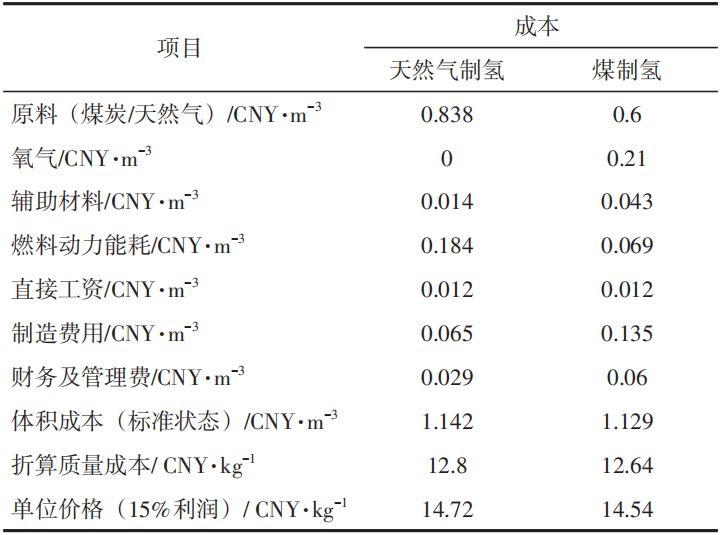 表1天然氣制氫和煤制氫的氫氣成本分析